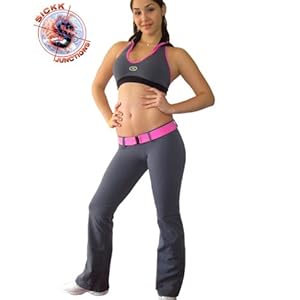 Brazilian Fitness Wear Workout Clothing: Wide Belt Pants & Hood Bra-top Set - Gray And Pink Feature