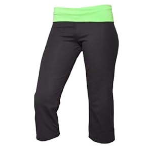 Boxercraft Black With Lime Fold Down Waistband Spandex Yoga Capri -great For Exerise And Workouts Overview